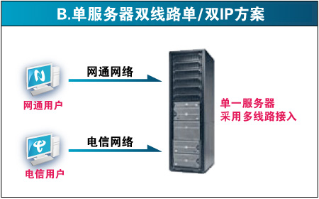 目前,虚拟主机行业中涌现出几家服务机构推出各种南北互联互通的虚拟主机服务,他们的解决大体分为四种,详见:双线路能打通南北网络瓶颈吗? (来源:世界网络) 第一种:双服务器双机房方案 第三种:智能域名方案(双服务器) 缺点:跟第一种方案一样,出多一倍的费用,并且"智能"解析域名在国内还不成熟,经常发生电信的用户访问时解析到网通ip的情况(因为ip数据库不准确)。 第四种:CDN解决方案 通过相关程序自动抓取用户源服务器的数据,然后缓存在不同网段节点的服务器上。 炳信科技采用的双线数据机房为单服务器单ip双线接入方案,电信网通各15G出口,同时到铁通、联通、移动也有高速的路由。彻底解决了南北互联互通的问题,并且价格上也较其他双线方案便宜。比如,一个空间200元,用第一、三种方案需要200*2=400元,用第四种方案,需要再购买一个cdn,一共是200+300=500元。而采用第二种方案,我司的价格仅为300元,不但效果最好,而且成本最低。所以炳信科技提供的双线路虚拟主机是目前国内性价比最高的双线主机!